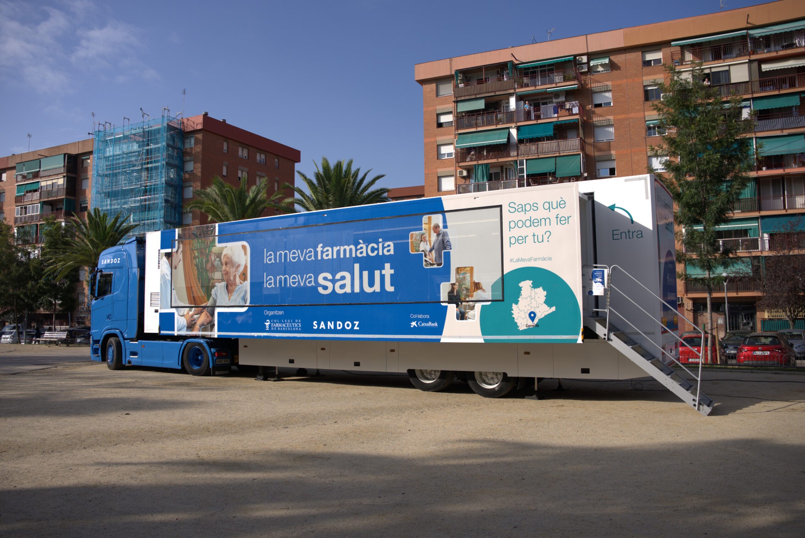 Barcelona, 14 d’octubre de 2025.- Des d’avui, i fins el 15 d’octubre, una farmàcia mòbil estarà ubicada a la Plaça Europa de Cornellà per donar a conèixer als veïns i veïnes què poden fer els farmacèutics per la seva salut. Es tracta de la campanya divulgativa i sanitària, “La meva farmàcia, la meva salut”, impulsada pel Col·legi de Farmacèutics de Barcelona (COFB) i la farmacèutica Sandoz, amb la col·laboració de CaixaBank i el suport de l’Ajuntament de Cornellà.