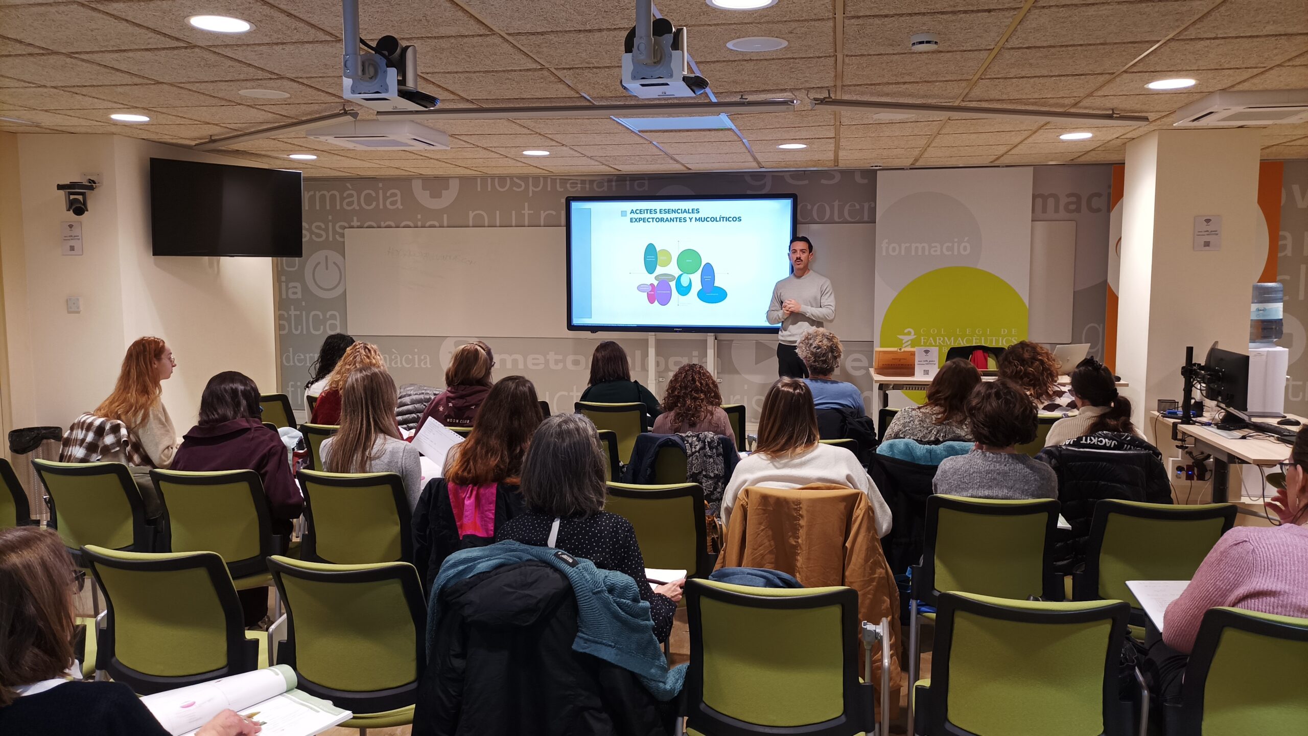 A finals de febrer, també es va celebrar una nova formació en aquest àmbit, “Fitoteràpia, usos i aplicacions dels olis essencials en el maneig del dolor [Nivell 2]”, amb el patrocini de Pranarôm. Les dues sessions del curs les va impartir el farmacèutic especialista en olis essencials i responsable de comunicació científica de Pranarôm International, Alfredo Quevedo. La formació va ser moderada per Josep Allué, vocal de Plantes Medicinals i Homeopatia del COFB. L’objectiu va ser adaptar els coneixements adquirits prèviament en els cursos de base d’olis essencials als diversos tipus de dolor, fent èmfasi en l’atenció farmacèutica d’aquests pacients. Allué va explicar que “l’ús d’olis essencials per manejar el dolor és una pregunta constant que molts farmacèutics escolten durant el dia a dia de la farmàcia, i tenir una visió pràctica i basada en l’evidència científica és essencial per dur-la a la pràctica”.