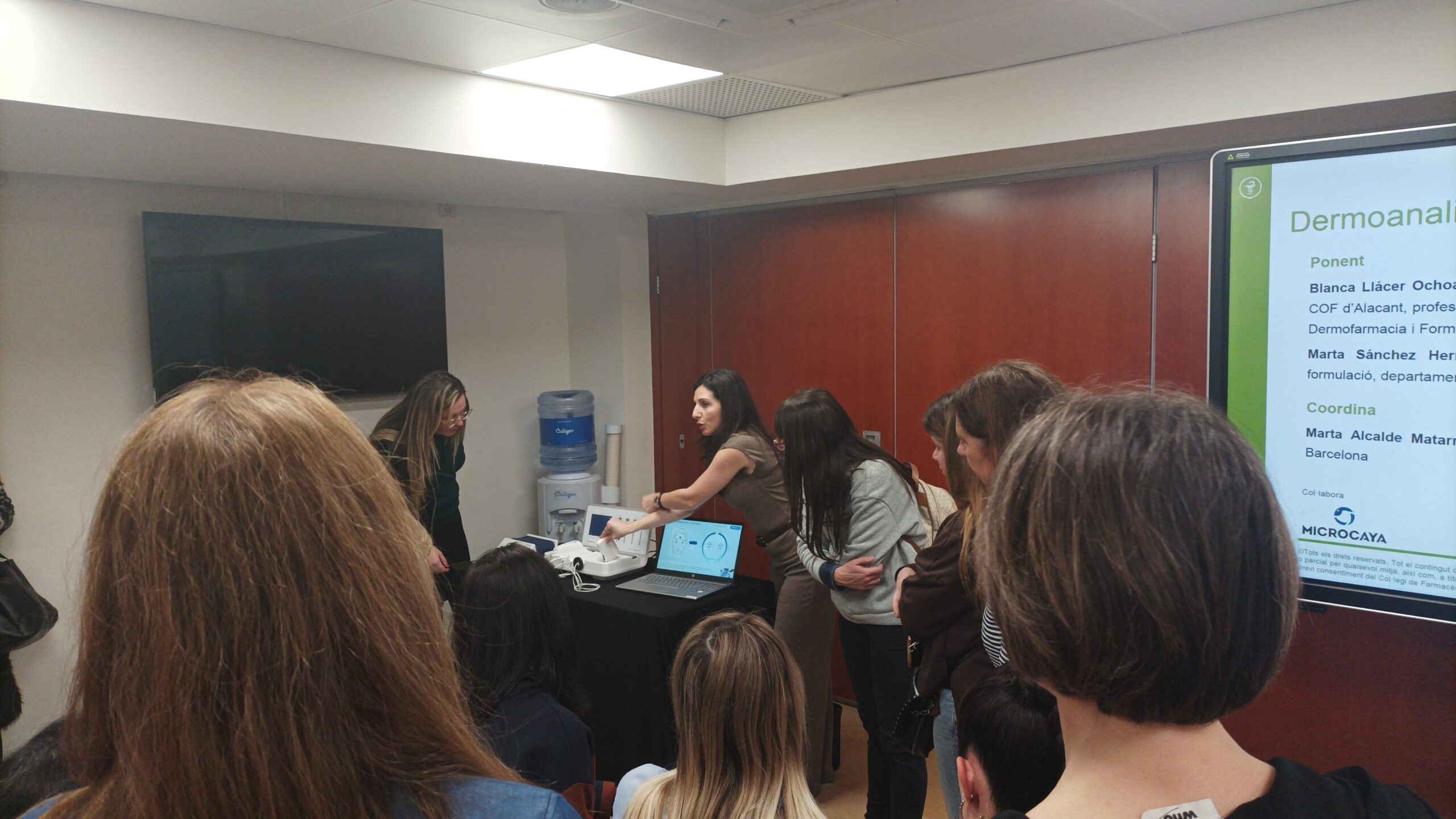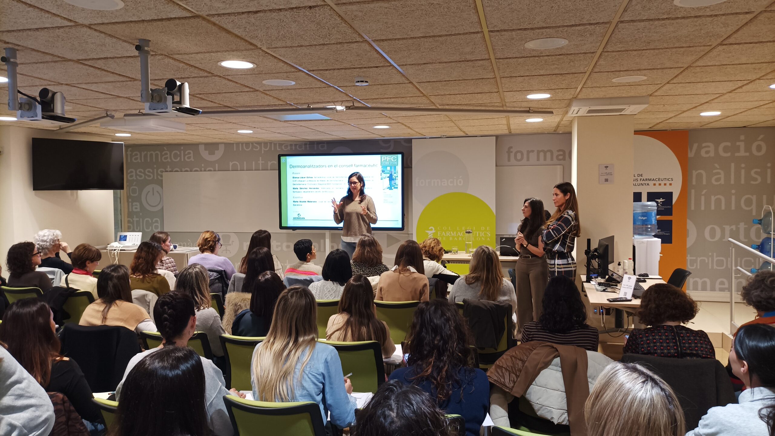El Col·legi de Farmacèutics de Barcelona (COFB) va celebrar el 25 de febrer la formació “Dermoanalitzadors en el consell farmacèutic”, amb la col·laboració de Microcaya. La sessió va ser impartida per Blanca Llácer, farmacèutica i vocal de Dermofarmàcia i Formulació Magistral del Col·legi Oficial de Farmacèutics d’Alacant, i Marta Sánchez, llicenciada en Farmàcia i amb màster en dermocosmètica i formulació. La vocal de Dermofarmàcia i Productes Sanitaris del COFB, Marta Alcalde, va coordinar la formació.