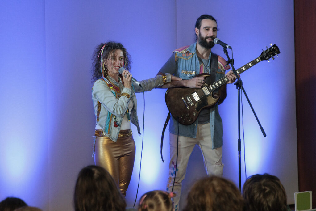 Los niños y niñas disfrutaron de una chocolatada antes de que empieces un concierto familiar con música en directo con el dúo de Lali BeGood.
